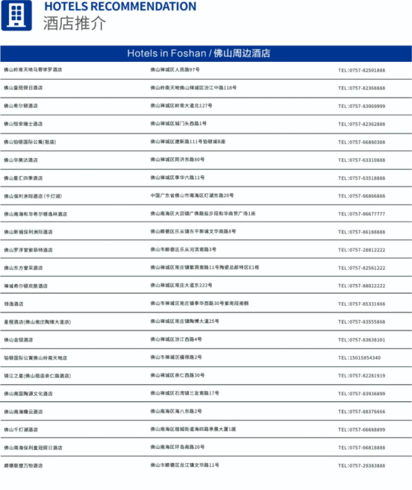 一些檸檬一些茶、宴福 住宿推薦 遠道而來的觀眾記得提前預(yù)定展館周邊的酒店哦,第36屆佛山陶博會共有50+合作酒店,部分酒店還設(shè)有穿梭車站點。陶小陶溫馨提示一定要選擇達到防疫標準的酒店哦。