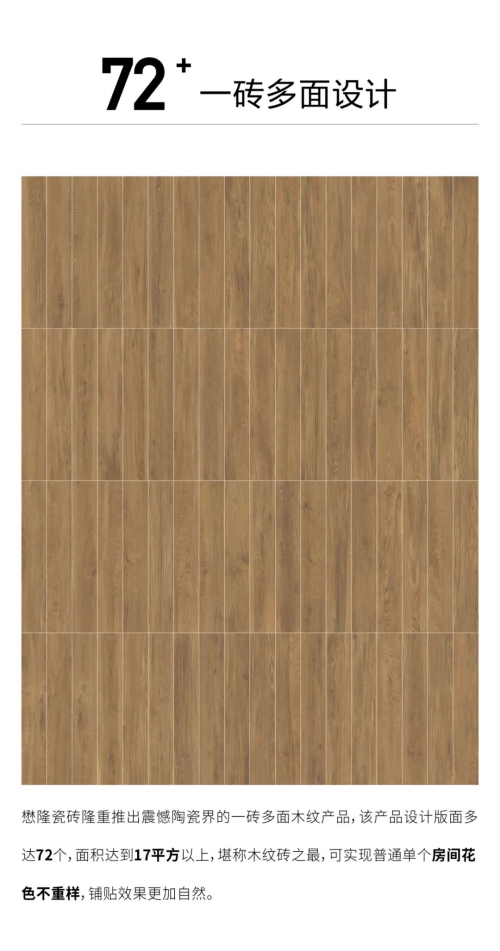 本屆展會,懋隆瓷磚將帶來震撼陶瓷界的一磚多面木紋產(chǎn)品,該產(chǎn)品設計版面多達72個,面積達到17平方以上。那么今天,讓我們一起跟隨小陶的步伐,提前走進懋隆瓷磚感受一下吧!