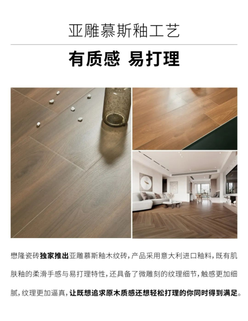 懋隆瓷磚先后獲得“木紋磚領軍品牌”、“廣東省木紋磚前三甲品牌”等重磅榮譽,產(chǎn)品入選優(yōu)衣庫、肯德基、漢庭酒店等著名連鎖工程,是陶瓷行業(yè)中具有知名度和影響力的木紋磚品牌。